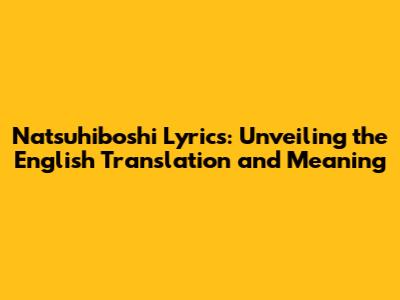 Hey music lovers! Ever stumbled upon a song that just grabs you, even if you don't understand the language? That's how I felt the first time I heard "Natsuhiboshi." It's got this magical, almost ethereal vibe, and I just had to know what it was all about. So, I dove deep, and now I'm here to break down the Natsuhiboshi lyrics in English, exploring the meaning, and hopefully, helping you appreciate this beautiful song even more. Get ready to have your heartstrings pulled, guys!