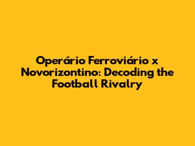 Hey guys! Let's dive deep into the exciting world of football and take a closer look at the Operário Ferroviário versus Novorizontino showdown. We'll break down their head-to-head results, analyze their performances, and explore what makes this matchup so compelling. Get ready for a thrilling journey through stats, strategies, and the passion that fuels this football rivalry. Buckle up; it's going to be a fun ride!