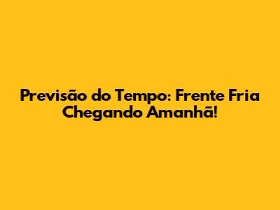 Previsão Do Tempo: Frente Fria Chegando Amanhã!